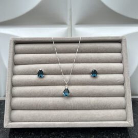Conjunto Gota Azul Marinho Zircônia em Prata 925