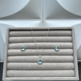 Conjunto Gota Azul Turquesa Zircônia em Prata 925
